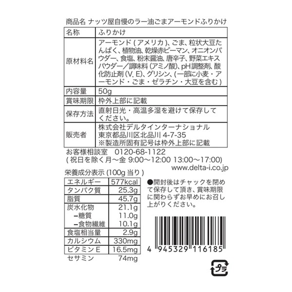ナッツ屋自慢のラー油ごまアーモンドふりかけ (10袋入り)0513 ドライフルーツ ¥4,000(税込) 数量 1 2 3 4 5 6 7 8 9 10 カートに入れる 特商法に基づく表記(返品等) ※ご注文からお届け迄に1週間~10日程度の お時間を要する場合がございます。 ご不便、ご迷惑をお掛け致しますが、 何卒ご理解賜ります様、宜しくお願い申し上げます。